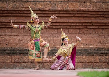 Khon: É uma forma de dança mascarada que representa batalhas e histórias do épico hindu Ramayana, chamado na Tailândia de Ramakien. Tradicionalmente, apenas homens realizavam o Khon, e a máscara simbolizava diferentes personagens, como deuses, demônios e heróis.